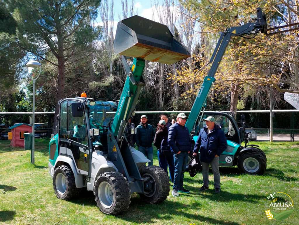 Además, completamos la jornada con la robustez de los tractores compactos 1026R y 3025E, y la versatilidad de la maquinaria Kramer, destacando la cargadora telescópica eléctrica KT144e y la cargadora de ruedas KL14.5.